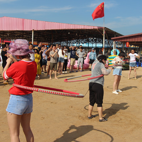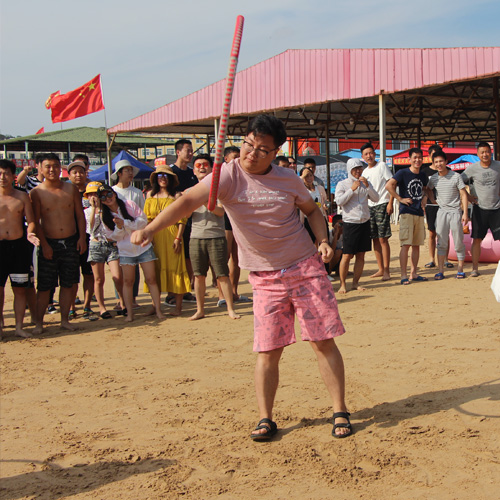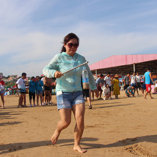 來到海邊,小伙伴分成四組,進行了一場激烈而有趣的較量。